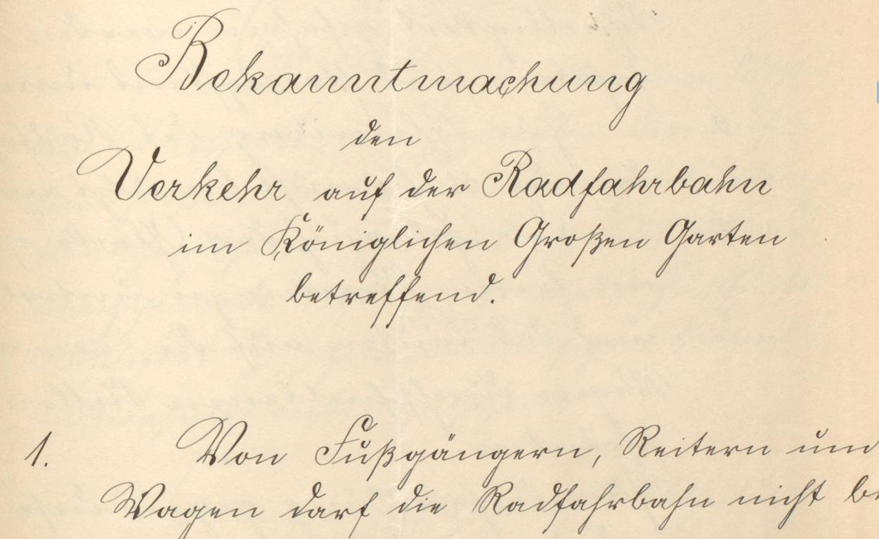 Ausschnitt aus Bekanntmachung vom November 1897 gefunden im Staatsarchiv, Hauptstaatsarchiv Dresden, 10923 Staatliche Gartenverwaltung, Großer Garten Dresden, Nr. 41.