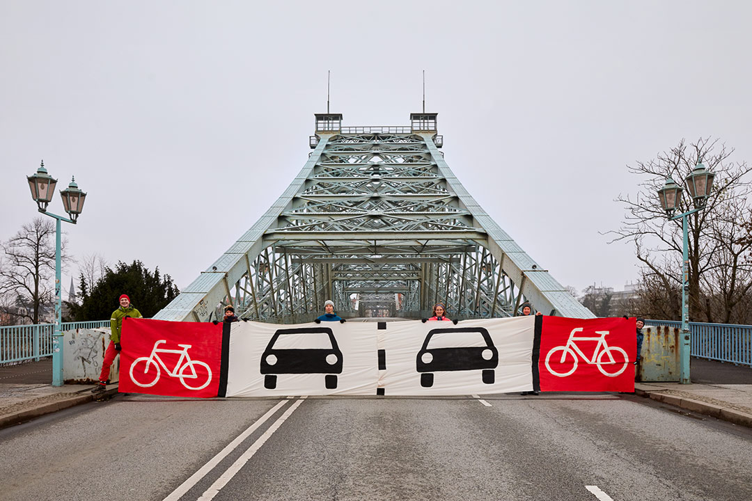 Montag 18. September 2023: Zum Beginn der europäischen Mobilitätswoche demonstrierte der ADFC Dresden 22 Minuten lang für Radwege auf dem Blauen Wunder. Jede Minute stand dabei für ein Jahr, das seit dem einstimmigen (!) Beschluss des Stadtrats für Radwege auf der Loschwitzer Brücke ergebnislos verstrichen ist (Fotos von der Demo auf flickr, siehe Link unten). Hintergrund der Demonstration war die von Oberbürgermeister Hilbert abgesagte Markierung von Radfahrstreifen auf der Brücke, nur kurz nachdem Baubürgermeister Stephan Kühn diese für das Wochenende angekündigt hatte.