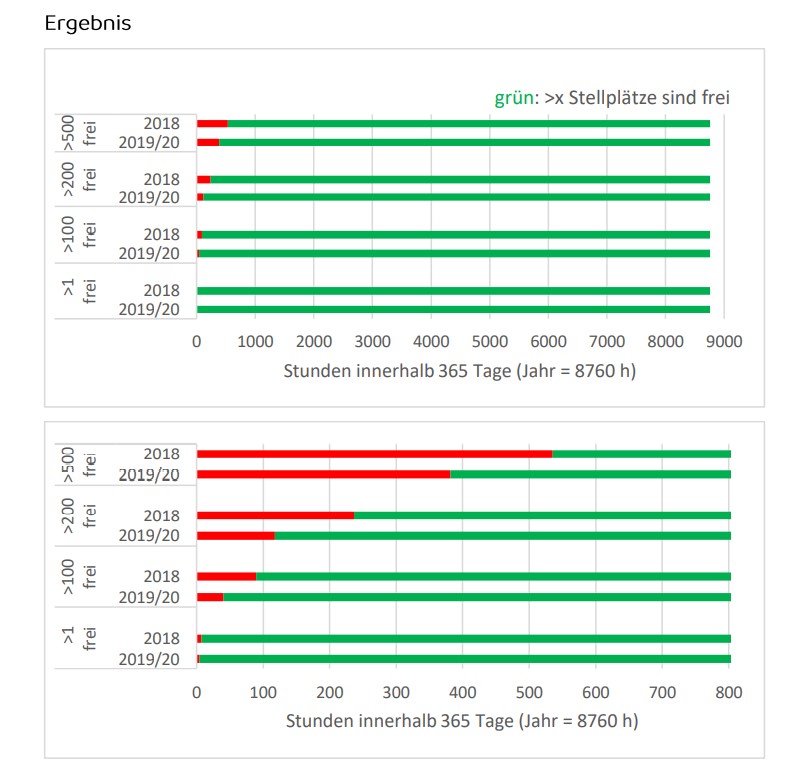 Mehr als 100 Parkplätze frei: 99,54% der Zeit, d.h. weniger als 100 freie Parkplätze gab es nur 40 Stunden lang im Zeitraum