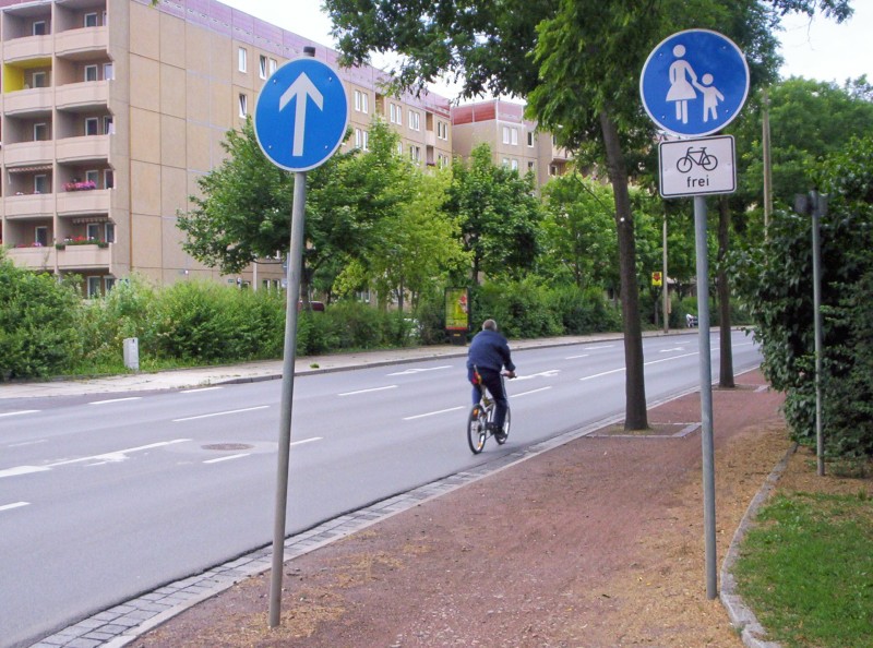 Auf der Bürgerwiese (B 172) stadteinwärts wurde ab der Einmünung Zinzendorfstraße die Radwegbenutzungspflicht (hier: StVO Z 240, Gemeinsamer Geh- und Radweg) auf einem gerade mal 2 Meter breiten, unbefestigten Sandweg vor einem Monat in "Fußweg - Radfahrer frei" umbeschildert. Radfahrer dürfen wieder die Fahrbahn benutzen.