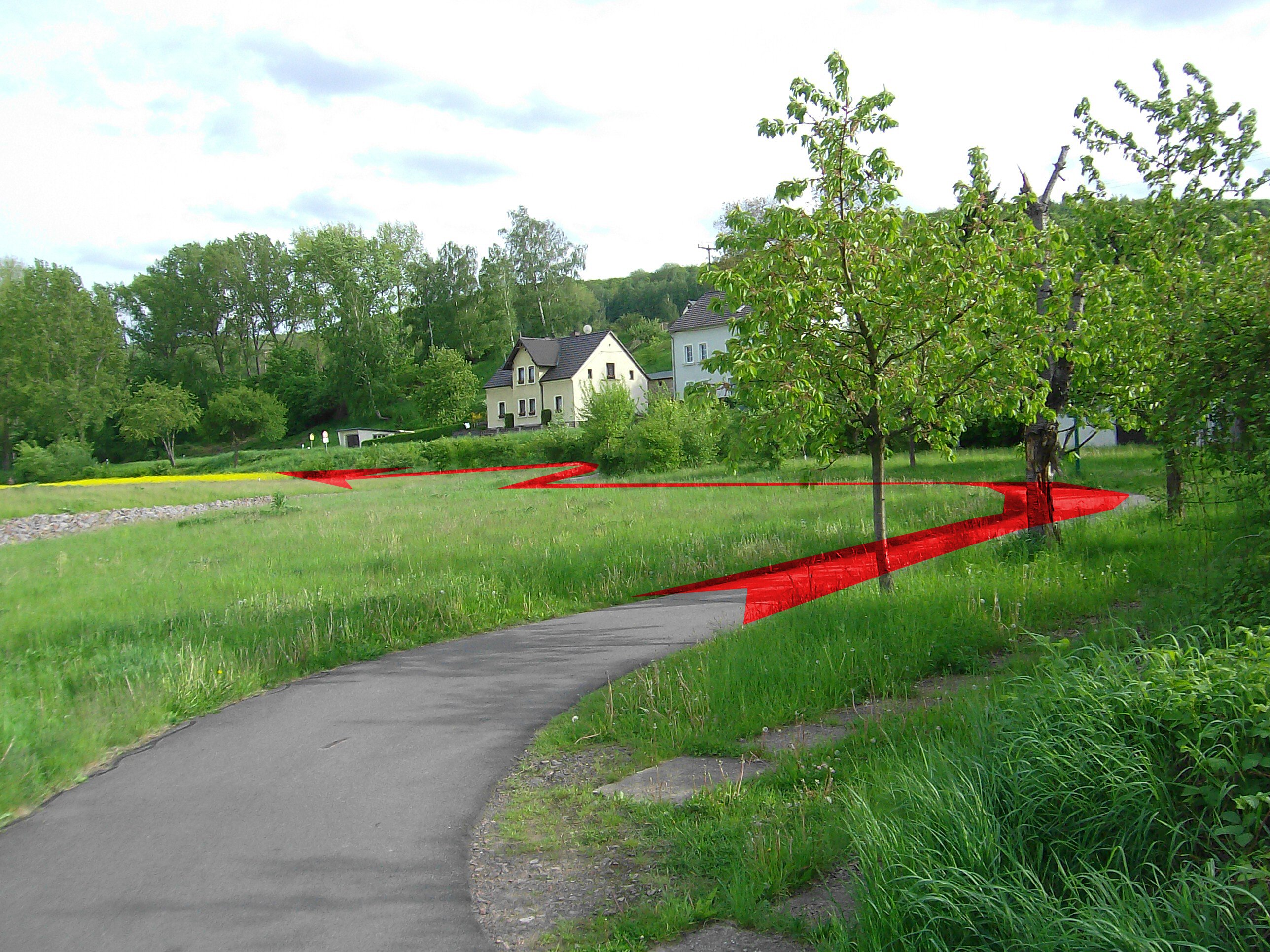 Der Höhepunkt kommt unmittelbar an der Stadtgrenze zu Dresden. Hier wird aus dem Asphaltband ein etwa 15 Zentimeter breiter Trampelpfad der übelsten Sorte. Wer mit Kinderanhänger oder einem nicht geländefähigen Rad auftaucht, kann hier umdrehen. Es heißt, Grundstückseigentümer würden die Dresdner Stadtverwaltung hindern, die fehlenden 250 Meter Radweg zu bauen. Merkwürdig, Straßen werden gerichtlich durchgesetzt wegen angeblichen Gemeinwohls. Für Wege des umweltfreundlichen Fahrrads scheinen andere Maßstäbe zu gelten.