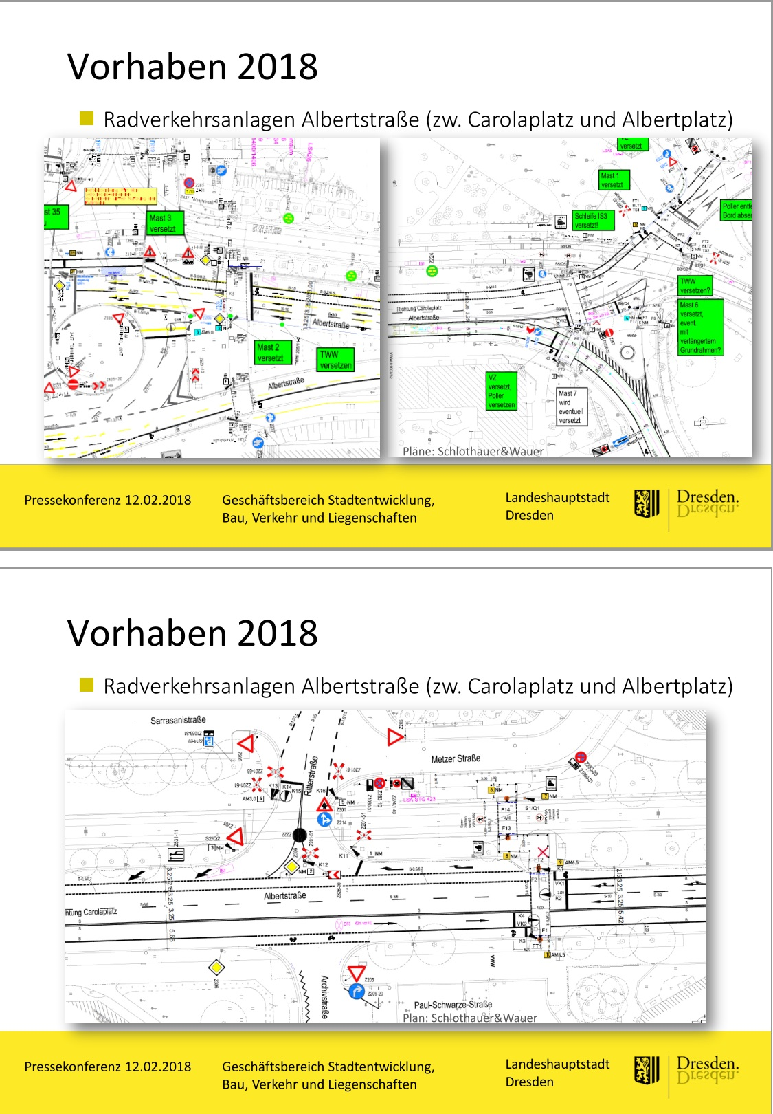 - Link zu Baupläne zur Albertstraße aus der Pressekonferenz "Radverkehr und Fußwege in Dresden – Projekte 2018/2019" der Landeshauptstadt Dresden am 12.02.2018