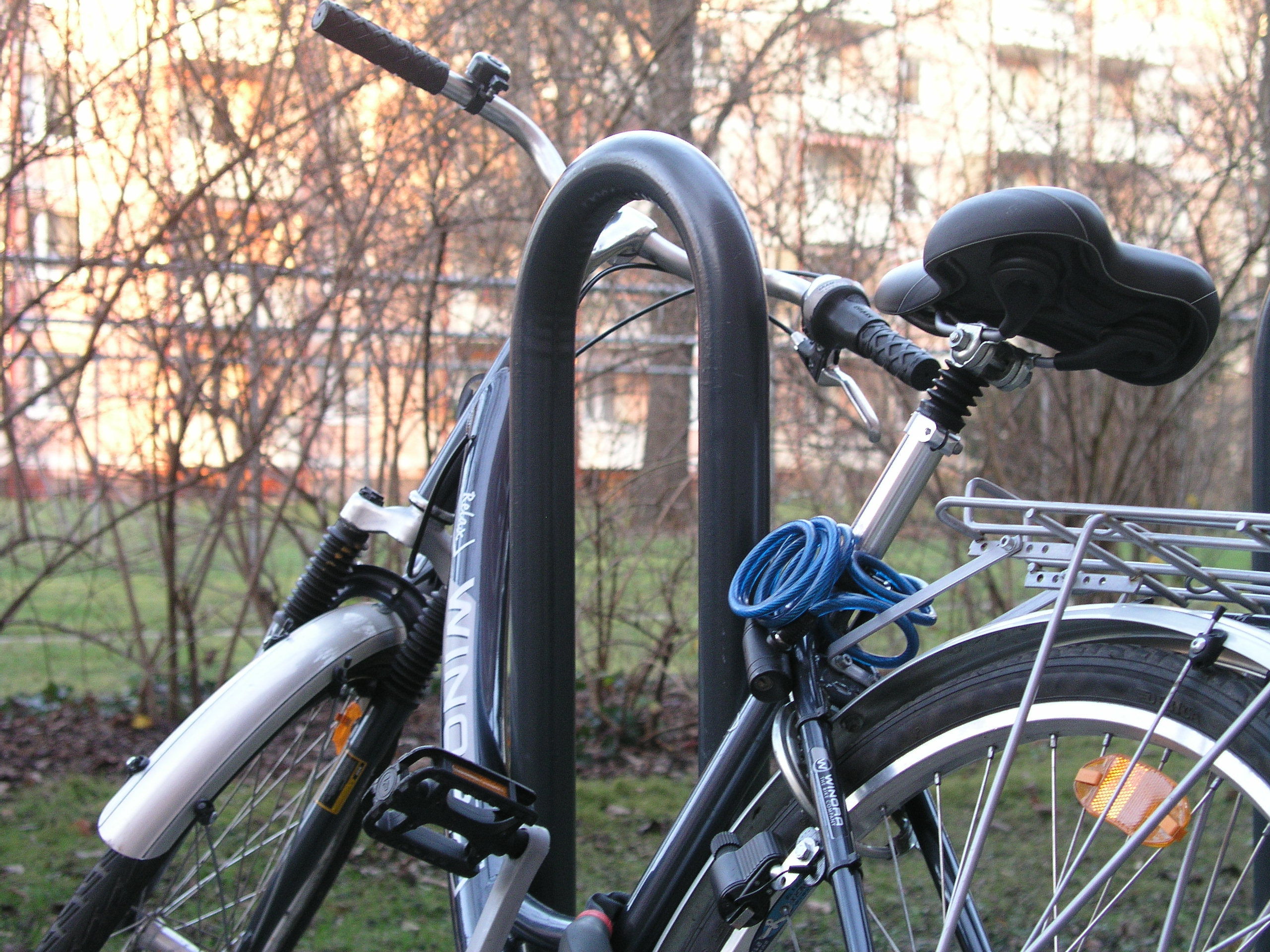 Unter der Turnhalle wurden übrigens 49 Autoparkplätze eingerichtet, laut Pressemitteilung der Stadt für rund 2 Mio. Euro - also ca. 40.000 Euro pro Parkplatz. Zum Vergleich kosten die kurzen Fahrradbügel bei einer Dresdner Firma 118 Euro (ohne Einbau) und die normgerechten Bügel 176 Euro.